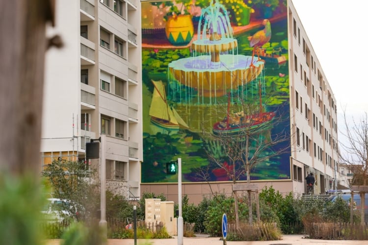 L’œuvre monumentale de Matthieu Pommier, street-artiste lauréat du vote des habitants du quartier, a été inaugurée dans le quartier Fontaine d’Ouche.